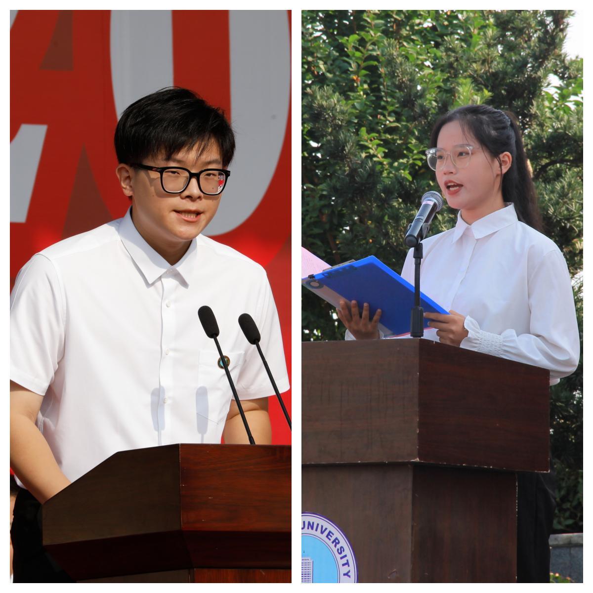 高年级学生代表、资源与环境学院张雅璇讲述了自己成为学霸的心得与体会,早立大志、学会独立、悦纳自己。全国大学生“挑战杯”特等奖团队成员、经济与管理学院廖培霖分享了自己对青春的解读,不懈奋斗、勇于创新、敢于担当。