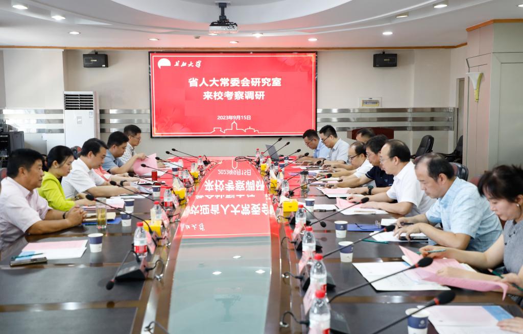 新闻网讯(通讯员 杨云锋/文 刘健/摄)9月15日上午,湖北省人大常委会研究室副主任、地方人大工作研究会副会长詹金灿率省人大调研组一行来校调研学科建设和省人大课题研究情况。荆州市相关领导,校领导江厚顺、江万哲参加调研。